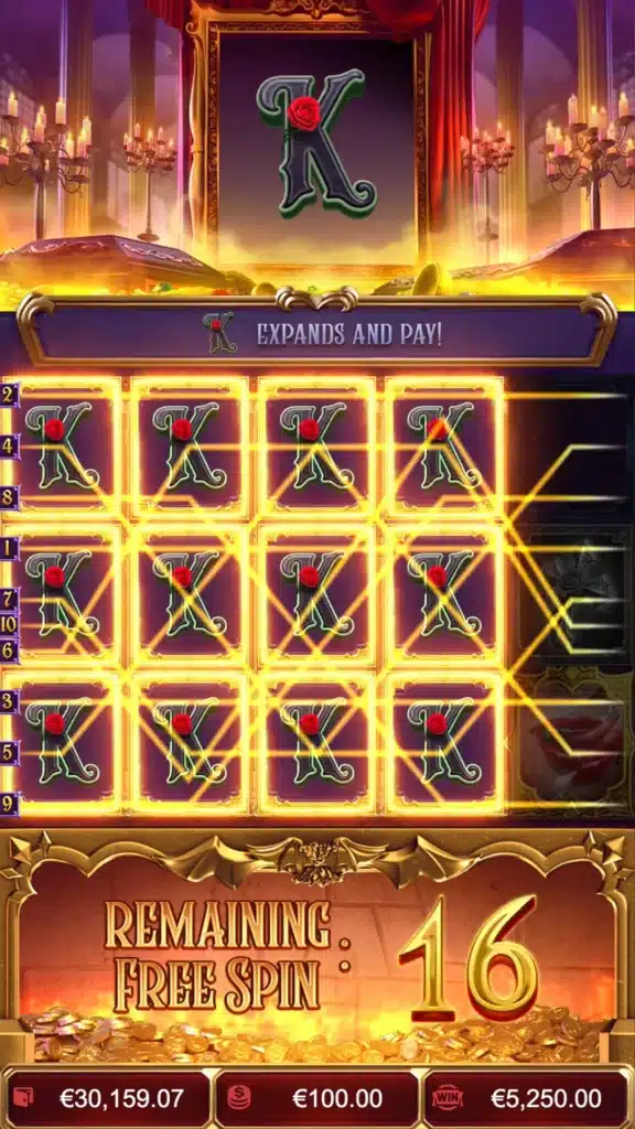 1. เกมนี้มีรูปแบบ 5 รีลและ 3 แถว ซึ่งแสดงตัวสัญลักษณ์บนหน้าจอเมื่อหมุนรีล.